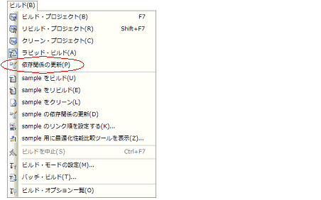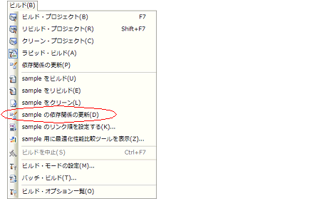 ファイルの依存関係の更新は,プロジェクト全体(メイン・プロジェクト,およびサブプロジェクト),またはアクティブ・プロジェクトに対して行います。