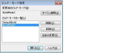 [ビルド]メニュー→[ビルド・モードの設定...]を選択すると,ビルド・モード設定 ダイアログがオープンします。