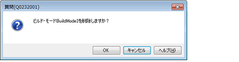 [ビルド・モードの一覧]で削除するビルド・モードを選択したのち,[削除]ボタンをクリックすると,以下のメッセージ ダイアログがオープンします。