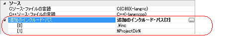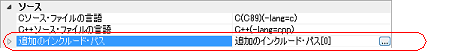 インクルード・パスの設定は,[ソース]カテゴリの[追加のインクルード・パス]プロパティで行います。