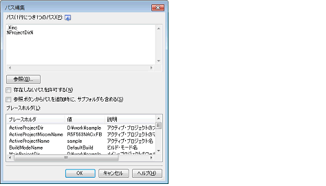 インクルード・パスの変更は,[...]ボタン,またはサブプロパティのテキスト・ボックスへの直接入力により行うことができます。