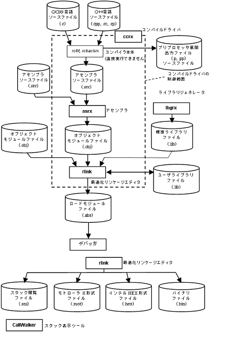 CC-RXは、以下に示す実行ファイルで構成されています。