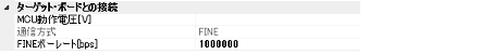ターゲット・システム上でのFINE信号の配線長や配線方法によっては,選択したFINEボーレートで通信できない場合があります。このFINEボーレートを下げることによって,通信が出来るようになる場合があります。 |