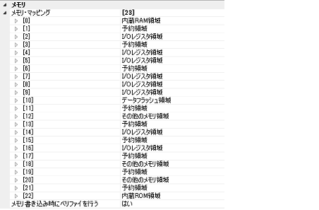 [メモリ・マッピング]プロパティを展開すると,次のサブ項目が表示されます。