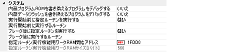 ダウンロード以外の操作( メモリ パネルからの操作やライン・アセンブル)で内蔵フラッシュROM領域を編集した場合,編集内容は次の実行操作時にフラッシュROMに書き込まれます。 |