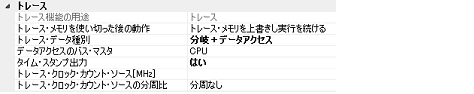 トレースのタイム・スタンプ分周機能が無いマイクロコントローラの場合は,[トレース・クロック・カウント・ソースの分周比]【RX71M, RX64Mグループ】プロパティは表示されません。その場合,[分周なし]固定となります。 |