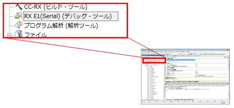 デバッグ・ツールとして[RX E1(Serial)]が選択されます。