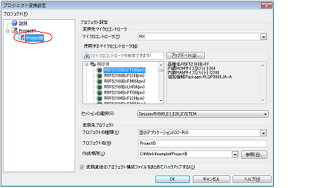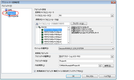 HEWのプロジェクト・ファイルを選択すると,プロジェクト変換設定 ダイアログがオープンします。