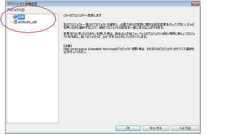 - | e2 studioのプロジェクトは,元のプロジェクトと同名のプロジェクトに変換されます。変換後のプロジェクト・ファイル名は,“プロジェクト名.mtpj”となります。 |