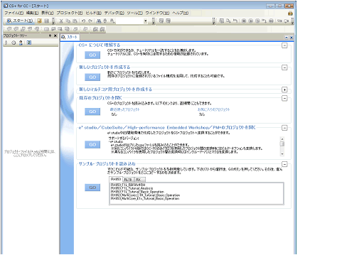 CS+を起動すると,以下のメイン・ウインドウが表示されます。
