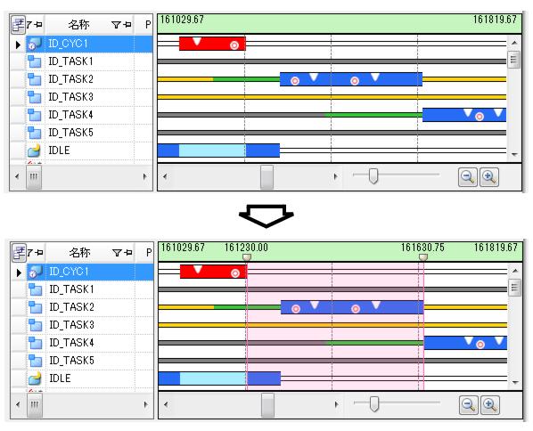 に表示する解析情報を“トレース・データの取得期間の解析情報”から“解析情報抽出区間の解析情報”へと更新することができます。