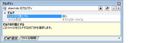 図 A.11 | プロパティ パネル:[ビルド設定]タブ(オブジェクト・ファイルを選択した場合) |