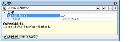 図 A.12 | プロパティ パネル:[ビルド設定]タブ(ライブラリ・ファイルを選択した場合) |