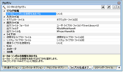 数学ライブラリ(単精度)関数を使用するかどうかを選択します。 [標準ライブラリ関数を使用する]プロパティで[いいえ]を選択した場合,本プロパティは[いいえ]となります。 rlinkコマンドの-LIBraryオプションに相当します。