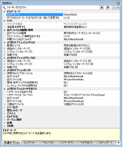 本タブでは,ビルド・ツールに対して,次に示すカテゴリごとに詳細情報の表示,および設定の変更を行います。