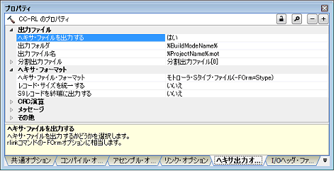 タブ上で各プロパティを設定することにより,対応するヘキサ出力オプションを設定することができます。