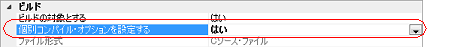 [ビルド]カテゴリの[個別コンパイル・オプションを設定する]プロパティで[はい]を選択すると,メッセージ ダイアログがオープンします。