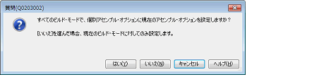 [ビルド]カテゴリの[個別アセンブル・オプションを設定する]プロパティで[はい]を選択すると,メッセージ ダイアログがオープンします。