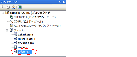 I/Oヘッダ・ファイルは,アプリケーション・プロジェクト新規作成時に“iodefine.h”として自動で生成され,プロジェクト・ツリーに登録されます。