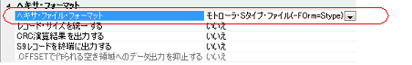 プロジェクト・ツリーでビルド・ツール・ノードを選択し,プロパティ パネルの[ヘキサ出力オプション]タブを選択します。[ヘキサ・フォーマット]カテゴリの[ヘキサ・ファイル・フォーマット]プロパティにおいて,ファイルの種類を選択してください。