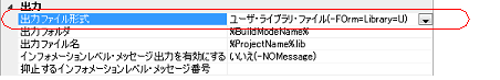 プロジェクト・ツリーでビルド・ツール・ノードを選択し,プロパティ パネルの[ライブラリアン・オプション]タブを選択します。[出力]カテゴリの[出力ファイル形式]プロパティにおいて,ファイルの種類を選択してください。