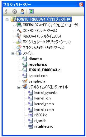 プロジェクト・ツリー パネルにシステム・コンフィギュレーション・ファイルを追加すると,リアルタイムOS生成ファイル・ノードが表示されます。