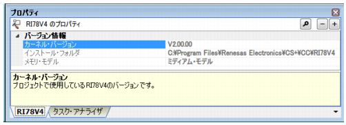 プロジェクト・ツリー パネルで選択しているリアルタイムOSノード,システム・コンフィギュレーション・ファイル等について,カテゴリ別に詳細情報の表示,および設定の変更を行います。
