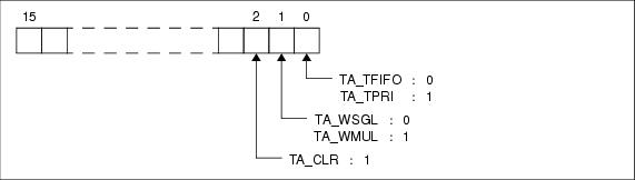 TA_CLR: 要求条件が満足した際,ビット・パターンをクリア(0x0の設定)