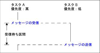 ただし,本サービス・コールを発行した際,対象メールボックスからメッセージを受信することができなかった(待ちキューにメッセージがキューイングされていなかった)場合には,メッセージの受信は行わず,自タスクを対象メールボックスの待ちキューにキューイングしたのち,RUNNING状態からWAITING状態(メッセージ受信待ち状態)へと遷移させます。