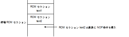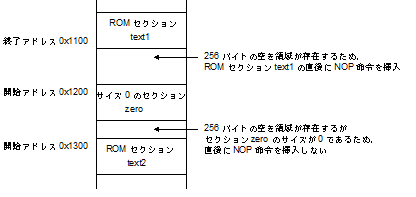 例 3. | ROMセクションの直後に配置されたサイズ0のセクションを含む128バイト以上の空き領域が存在する場合,NOP命令を挿入します。 |