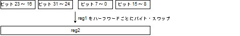 第1オペランドに指定したレジスタ値を,ハーフワード単位でバイト・スワップして,第2オペランドに指定したレジスタに格納します。