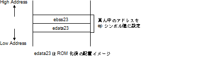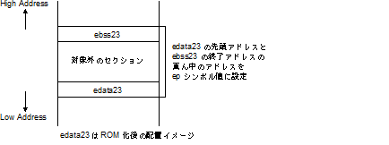 <2> | アドレスの小さい方から,ebss23,edata23セクションの順で配置されている場合 |