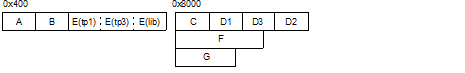 - | "()"で同一アドレス配置を括った場合、"()"の直前のセクション(この例の場合はC,E)の直後を先頭として、"()"内の同一アドレス配置が行われます。 |