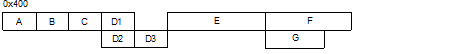- | ":"で区切った直後のセクション(この例の場合はA,D2,G)を先頭として、それぞれ先頭が同一アドレスに割り付きます。 |