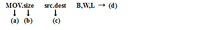 命令の構文を記号で示しています。(:format)を省略した場合、アセンブラが最適な指定子を選択します。
