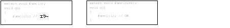 関数を使用する前に関数原型が必要です。そのときには、仮引数の型も必ず宣言してください。