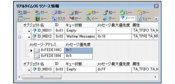 なお,メッセージのキューイング方式が“メッセージの送信要求を行った順TA_MFIFO”の場合には,“-”が表示されます。