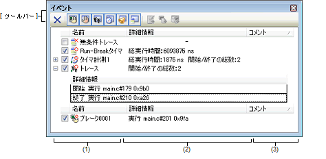 注 | トレース・イベント/タイマ計測イベント/ビルトイン・イベント(無条件トレース・イベント/Run-Breakタイマ・イベント)以外のイベントが対象となります。 |