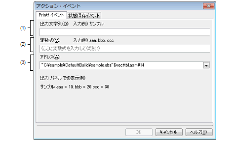 アクション・イベント ダイアログ:[Printfイベント]タブ