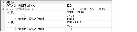 各コアのCPUクロック周波数を,ドロップダウン・リストによる選択,または直接入力により,0.001〜999.999(単位:MHz)の範囲の数値で指定してください。