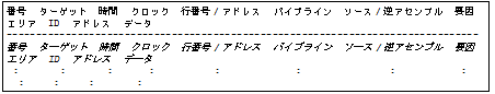 収集したトレース・データの内容を範囲指定して,テキスト・ファイル(*.txt)/CSVファイル(*.csv)に保存することができます。ファイルに保存する際は,デバッグ・ツールから最新の情報を取得し,このパネル上での表示形式に従ったデータで保存します。