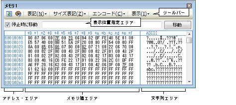 なお,各エリアの見方,および機能についての詳細は,メモリ パネルの項を参照してください。