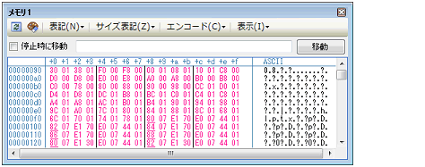 リアルタイム表示更新を行っているメモリ表示の例(メモリ パネル)