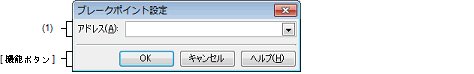 ブレークポイントのアドレス式を直接入力するか(最大指定文字数:1024文字),またはドロップダウン・リストにより入力履歴項目(最大履歴個数:10個)を選択します。