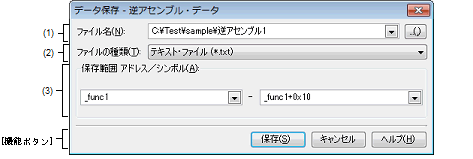保存するアドレス範囲を,開始アドレスと終了アドレスで指定します。 |