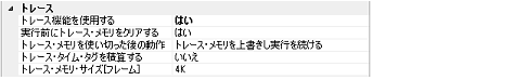 設定は,プロパティ パネルの[デバッグ・ツール設定]タブ上の[トレース]カテゴリ内で行います。