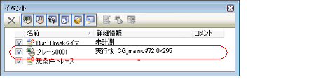 イベント パネルにおける[名前]エリアでは,イベント種別名が“ブレーク”として表示されます。