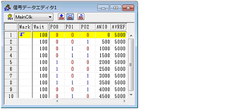 このウインドウでは,入力端子に対して任意のタイミングの入力信号データを数値で設定することができます。