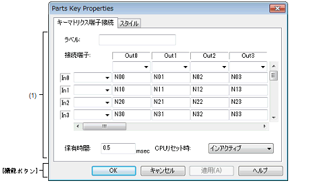 入出力パネル ウインドウの接続部品の一つであるキー・マトリクスの端子接続情報の設定,変更を行います。