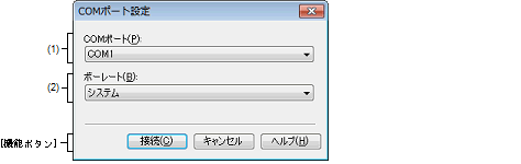 COMポートから切断状態の場合は,ボタンの表示名は“接続”になります。